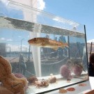 - Exponate, Tafeln und Poster informieren die Besucher über das Problem 'Plastikmüll im Meer'.