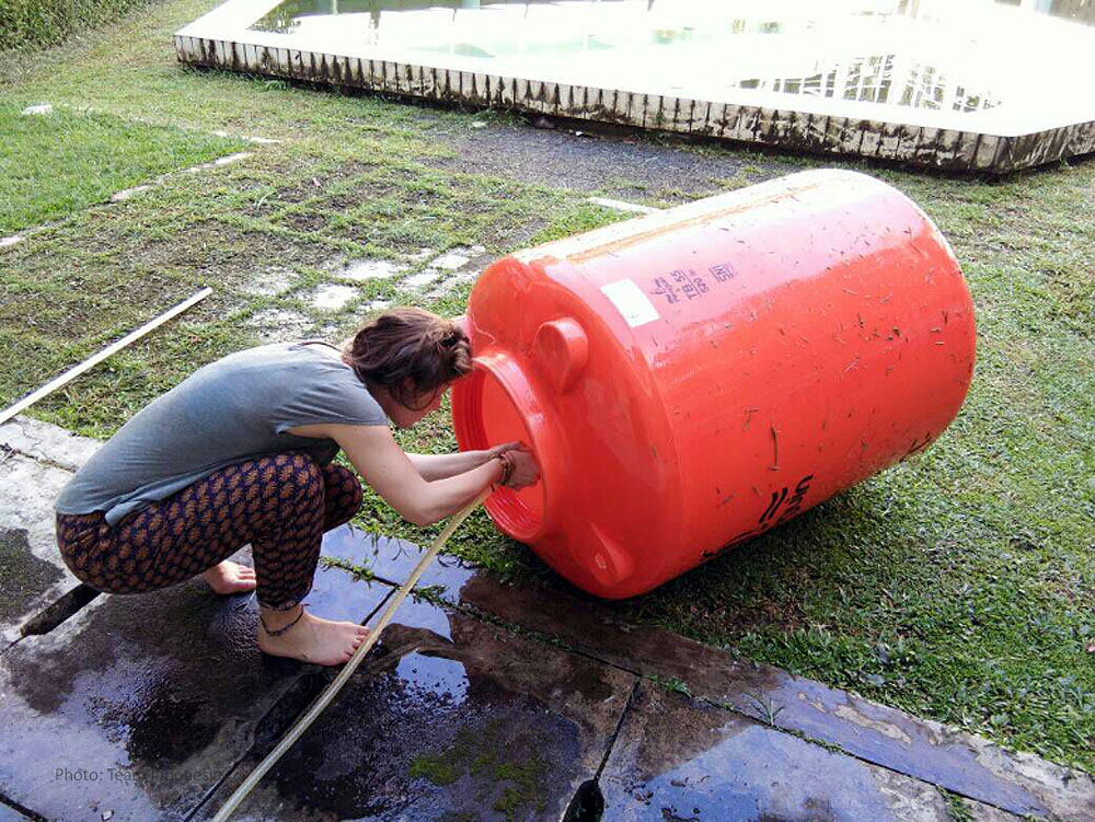 After having installed a successfully running water-filter-pump system, it was time to build the set up for the experiment. Luckily, there were many buckets, hoses, airstones and other stuff, which were left behind by former GAME teams. However, while building the set up was an easy job, finding a microwave, which is needed to prepare the algae pellets, turned out to be quite difficult. That’s why we had to go to the Asrama International Dormitory and employ some friends’ kitchen as a lab to prepare the algae pellets for the animals. The good thing is, we didn’t need a permission letter for that. There is something that needs to be mentioned: If you think bureaucracy in Germany is crazy – go to IPB University and you will know better. You want to borrow something or go to another lab? You will need to get a letter to get a letter to get another letter that finally brings you the permission to go somewhere or to use something.