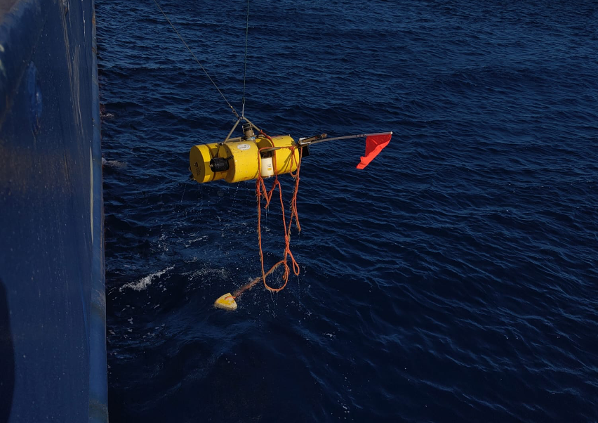 An ocean bottom seismometer is recovered. Photo: Johanna Salg, GEOMAR
