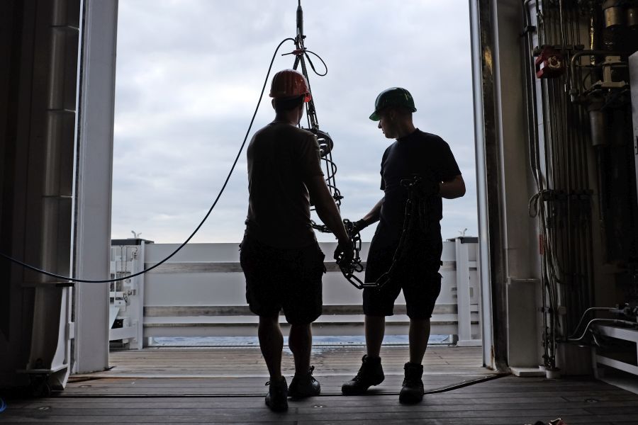 - Der Dunker kommt zurück an Bord / The Dunker is heaved back on board. Photo: Jan Steffen, GEOMAR