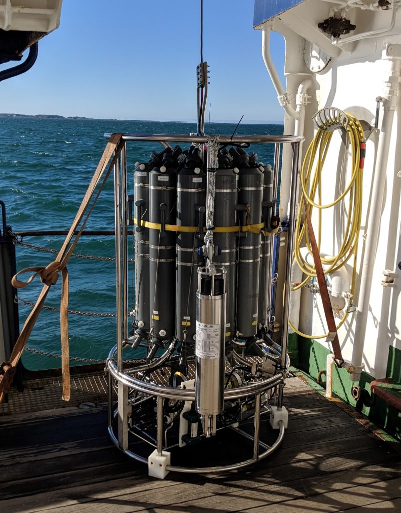 The CTD (bottom part) and water sampler (top part). Picture: Nico Schleinkofer.