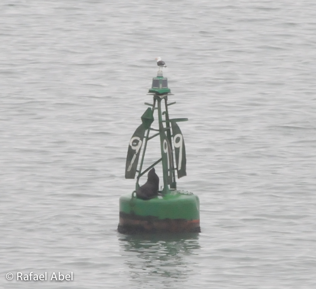 Die geschützte Bucht von Walvis Bay lässt die Vorfreude auf die kommmenden 18 Tage noch mehr ansteigen und so zeigt sich die Meteor beim Verlassen des Hafens von Ihrer besten Seite. Das Lotsenboot begleitet das Forschungsschiff noch bis ins Fahrwasser und in manchen Tonnen haben es sich Robben bequem gemacht.